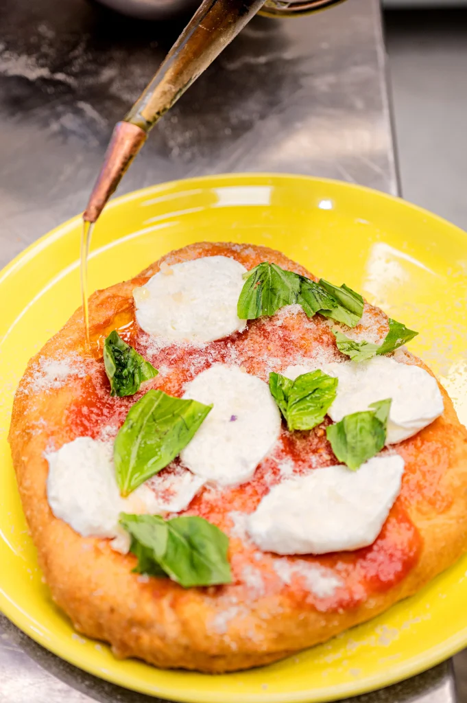 ‘O Scugniziello è nato come un tributo all’arte di “scugnare” il palato, meravigliandosi con un’esperienza di gusto che riflette l’essenza napoletana. Un omaggio a chi sa vivere con ironia e passione. Come uno scugnizzo che prima scherza e poi conquista, questa pizza gioca con le aspettative e sorprende con i suoi contrasti, riflettendo l’anima di chi sa prendersi sul serio solo quanto basta.